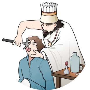 最早的拔牙方式就是把它敲掉,用一塊石頭或者其它堅硬的物體,放置在患牙上,并用一塊巖石或者錘子一樣的物體撞擊它,直到把牙齒打掉。并且在那個時期是沒有麻醉之類的藥物的,所以說那時候的人去拔牙都是冒著巨大的風險了。
