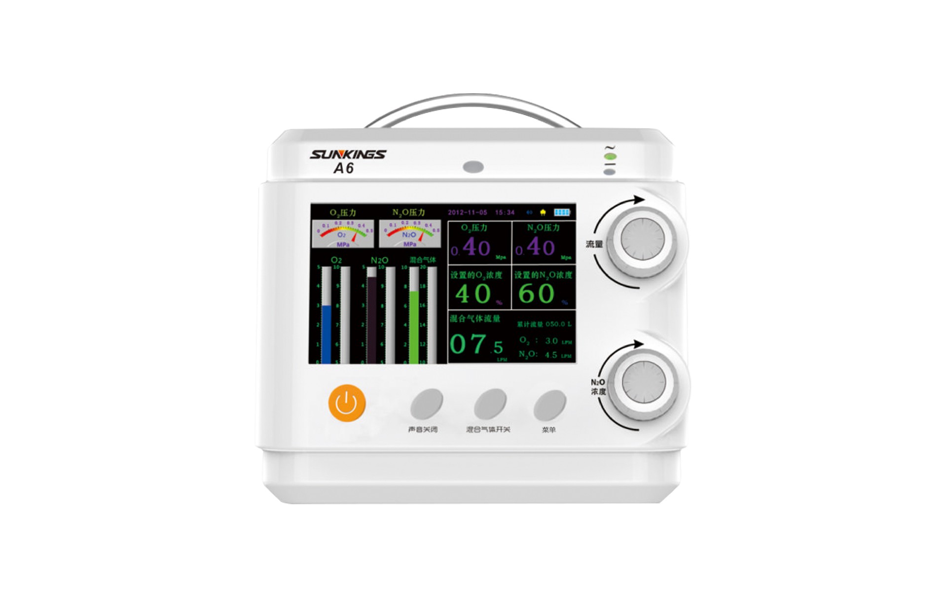 1、設定笑氣濃度調節(jié)范圍0-70%,氧氣最低濃度30%,保障患者充足的氧氣。