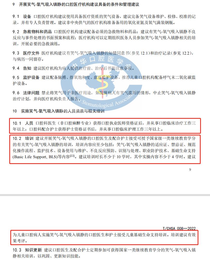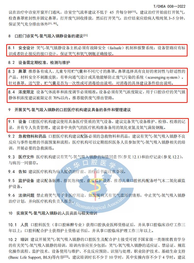 文件中指出,口腔門診若想要開展笑氧鎮靜技術,應按照中華口腔醫學會《口腔門診笑氣-氧氣吸入鎮靜技術操作指南》進行。