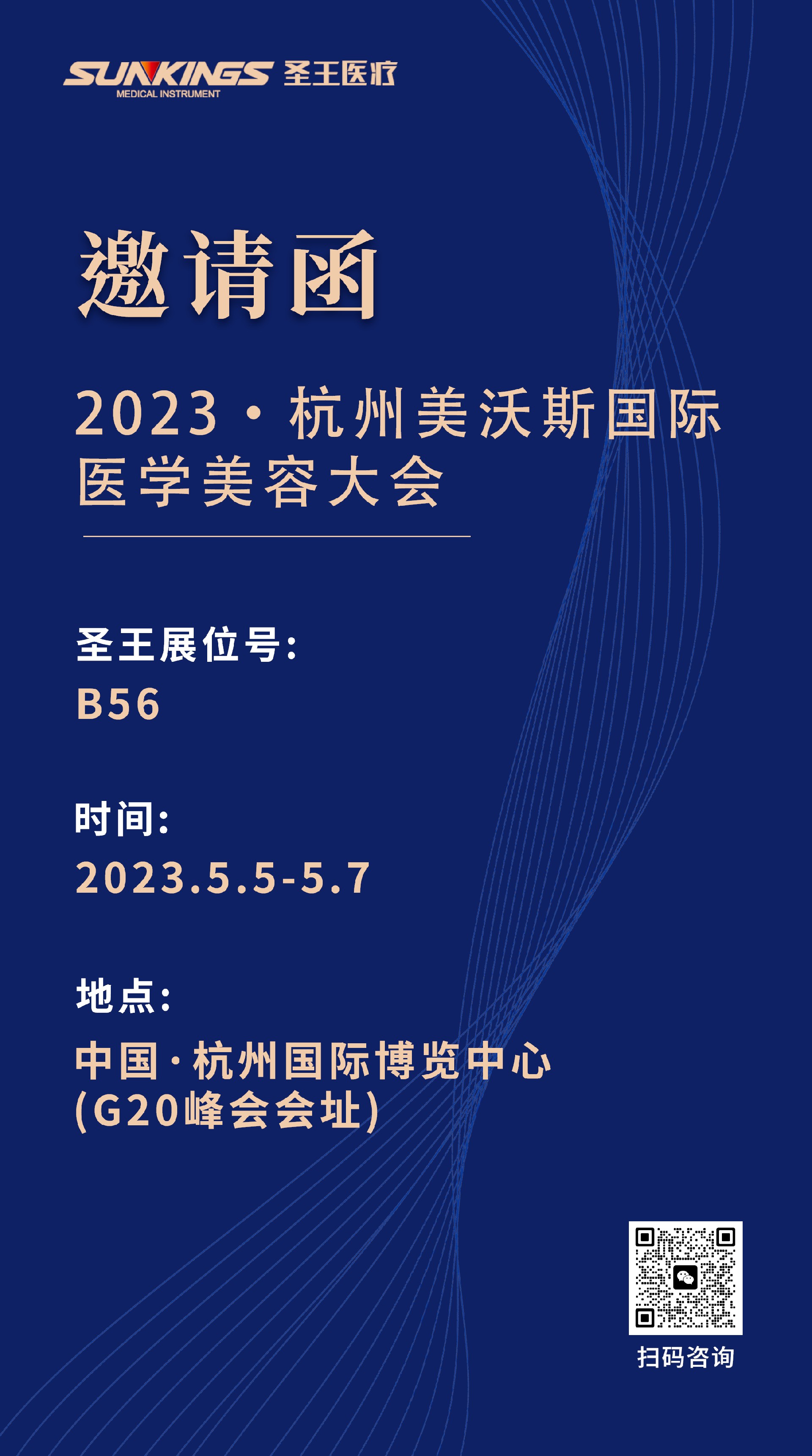 圣王醫療將于5月5日至7日,在杭州國際博覽中心參展第十四屆美沃斯國際醫學美容大會,展位號:B56,在此誠摯地邀請全國各界的伙伴們,蒞臨現場。